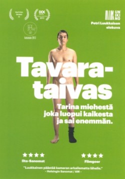 Tavarataivas kertoo 26-vuotiaan Petrin omalaatuisesta ihmiskokeesta. Alussa on mies, joka kokee tavarantäyteisen elämänsä ontoksi. Hiljalleen kehittyneen ahdistuksen raunioille syntyy rohkea seuraavaan neljään sääntöön nojaava projekti: 1) yhden vuoden ihmiskoe 2) kaikki tavarat varastoon 3) enintään yksi tavara päivässä takaisin 4) älä osta mitään tavaraa. Vuosi alkaa tyhjän asunnon lattialla pitkässä talvitakissa (1. esine) värjötellen. Katsoja ...