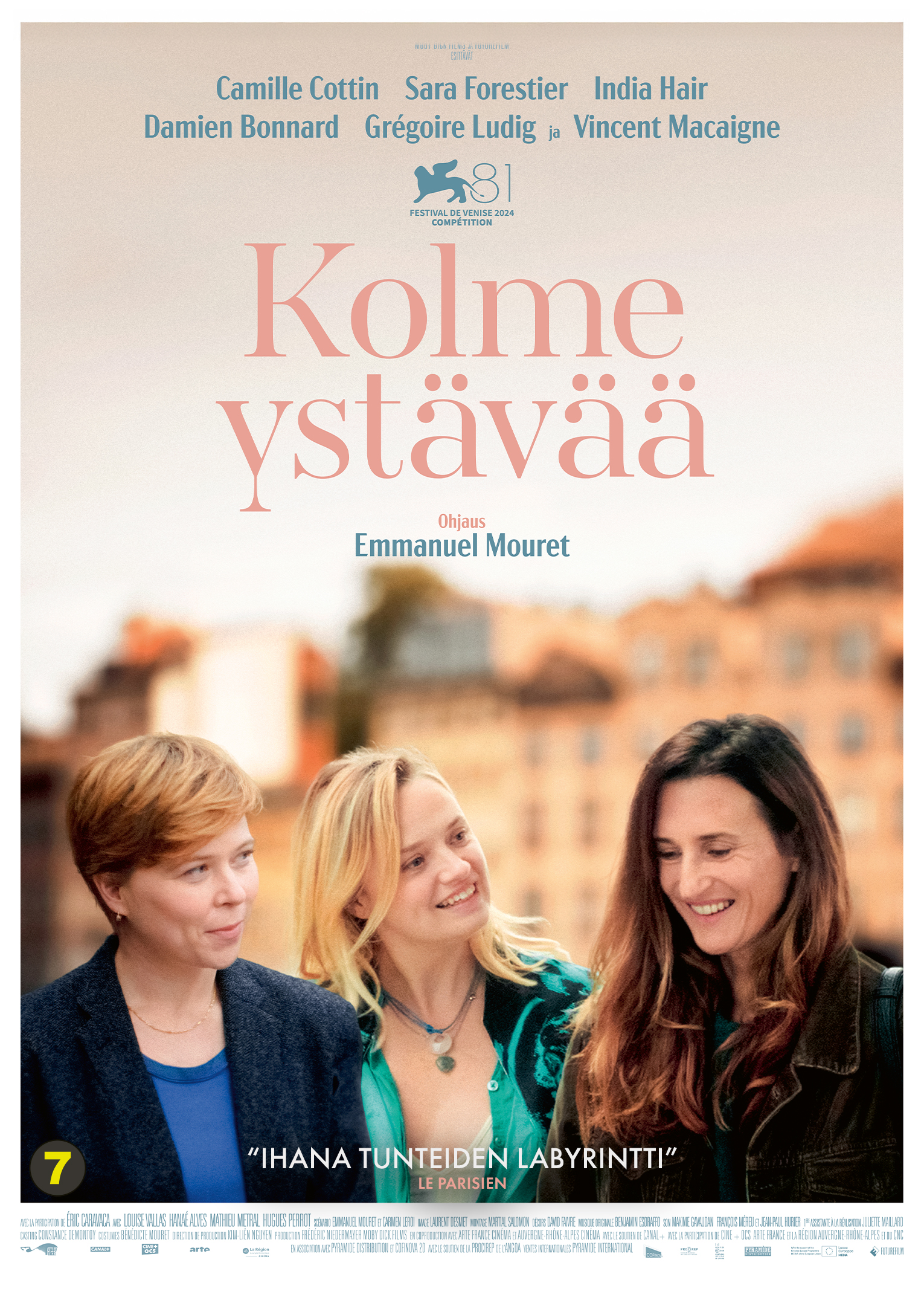 ”Kolme ystävää” on ranskalainen, Lyoniin sijoittuva draamakomedia aikuisista ystävyksistä, jotka koettavat parhaansa mukaan kuunnella sydäntään aiheuttamatta kuitenkaan liiallista tuskaa läheisilleen. Joan (India Hair) ei enää rakasta miestään, eikä valhetta muistuttava tunne jätä häntä rauhaan. Joanin paras ystävä Alice (Camille Cottin) tarjoaa vertaistukea sanomalla, että vaikka hänen oma suhteensa onkin hyvissä kantimissa, kipinä tuntuu puuttuvan. Alice ei kuitenkaan tiedä, että samaan aikaan hänen miehellään on suhde naisten yhteisen ystävän Rebeccan (Sara Forestier) kanssa. Kun Joan viimein ottaa ratkaisevan askeleen, tulevat myös hänen ystävänsä tempaistuksi mukaan pelon, ilon ja ihmissuhteiden pyörteeseen.