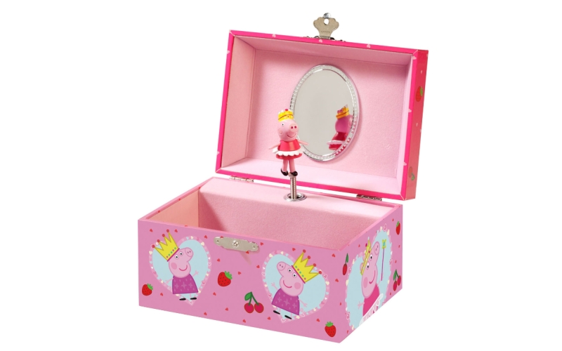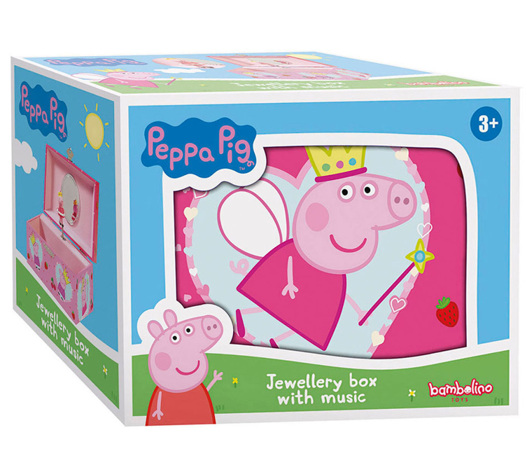 Säilytä pieniä aarteesi tässä ihastuttavassa PIPSA POSSU -musiikkikorurasiassa! Tämä kaunis korurasia on koristeltu Pipsa possulla ja hänen ystävillään, ja siinä on sisäänrakennettu soittorasia, joka soittaa suloisen melodian, kun rasia avataan. Täydellinen lapsille, jotka rakastavat Pipsa possua ja haluavat paikan säilyttää korujaan, pieniä salaisuuksiaan tai aarteitaan. Pakollinen hankinta jokaiselle pienelle Pipsa possu fanille!