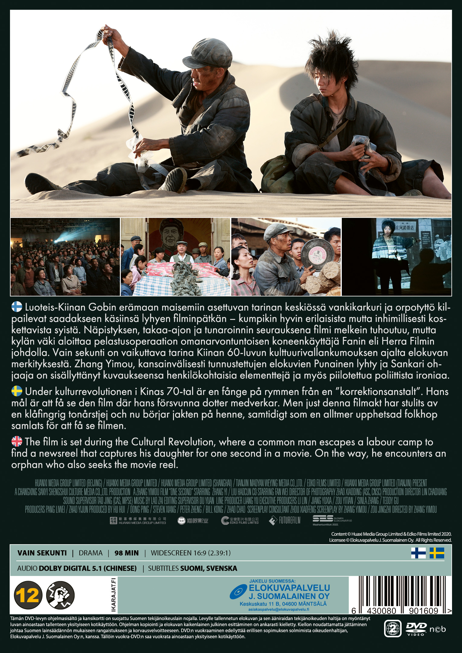 ”Vain sekunti” on vaikuttava tarina Kiinan 60-luvun kulttuurivallankumouksen ajalta elokuvan merkityksestä. Zhang Yimou, kansainvälisesti tunnustettujen elokuvien ”Punainen lyhty” ja ”Sankari” ohjaaja on sisällyttänyt kuvaukseensa henkilökohtaisia elementtejä ja myös piilotettua poliittista ironiaa. ”Vain sekunti” on voittanut lukuisia palkintoja, mukaan lukien Asian Film Awardsin parhaan ohjaajan ja sivuroolin palkinnot.