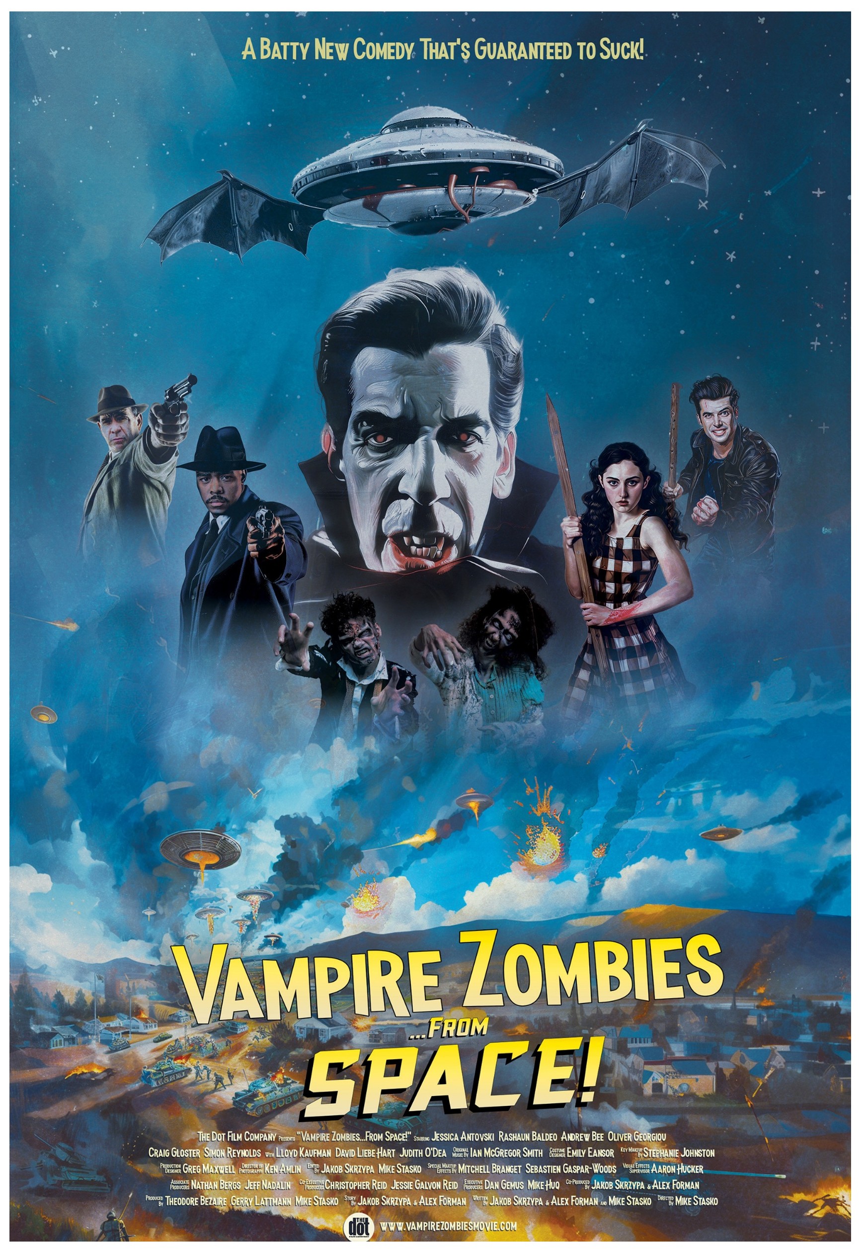 Avaruuden syvyyksissä Dracula (Craig Gloster) on laatinut tähän mennessä ilkeimmän suunnitelmansa: muuttaa Marlow’n pikkukaupungin asukkaat henkilökohtaiseksi vampyyri-zombien armeijakseen! Kirjava joukko, johon kuuluu mm. harmaantunut etsivä, aloitteleva poliisi, ketjupolttava rasvaaja ja määrätietoinen nuori nainen, lyöttäytyy yhteen pelastaakseen maailman.